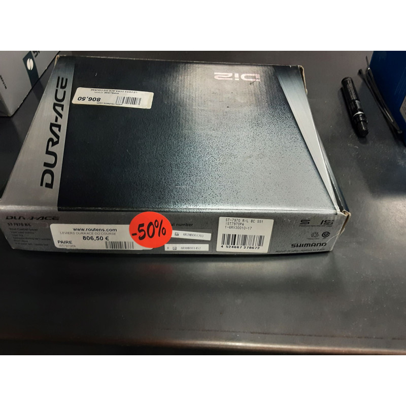 Manettes Shimano Dura-Ace Di2 ST-7970 : légères, ergonomiques, en carbone, pour transmission électronique 2x10 vitesses. Compatibles FlightDeck, confort et précision pour cyclistes exigeants.