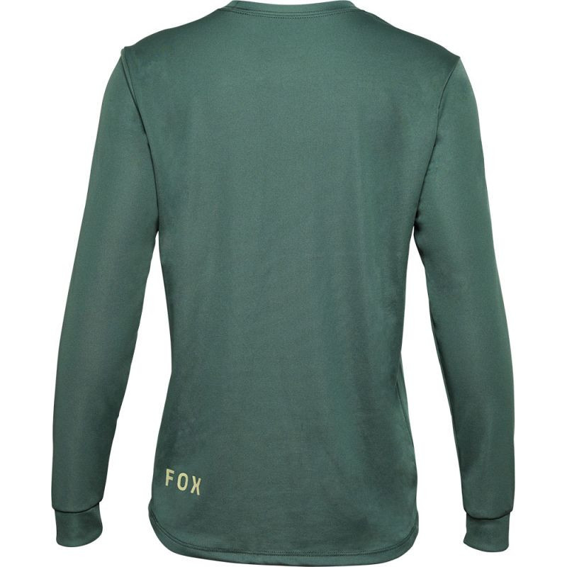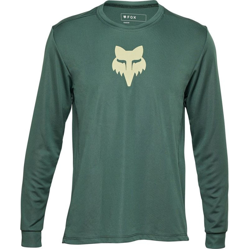 Maillot Fox Ranger LS enfant vert : tissu TruDri™, 100 % recyclé, coupe VTT avec dos rallongé. Respirant, confortable et stylé pour les jeunes riders sur la piste.
