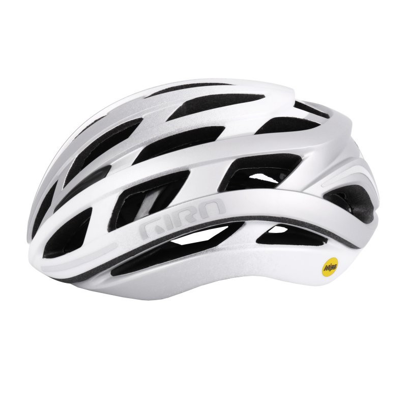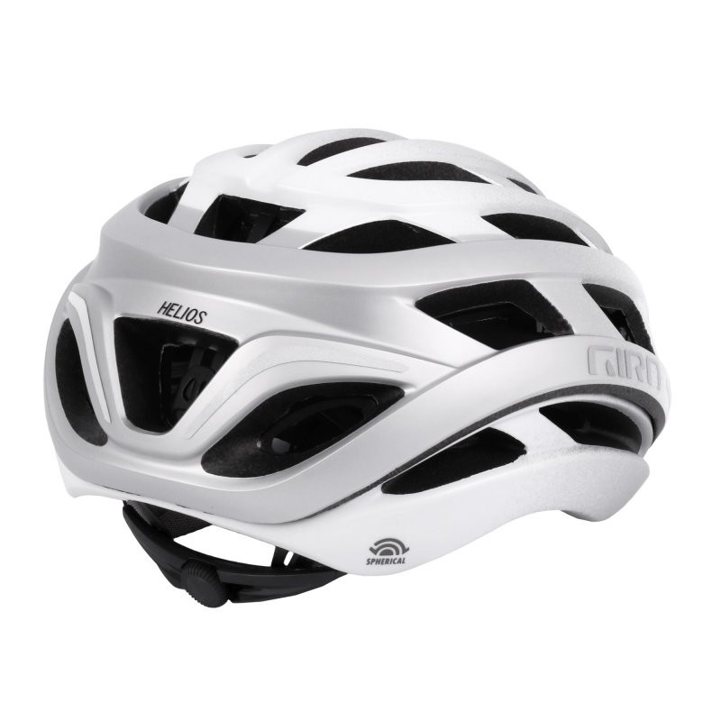 Casque vélo route Giro Helios Spherical MIPS blanc/argent mat : sécurité avancée, confort optimal, ventilation efficace. Technologie Spherical MIPS, coque légère, ajustement précis. Idéal pour cyclistes exigeants en performance et protection.
