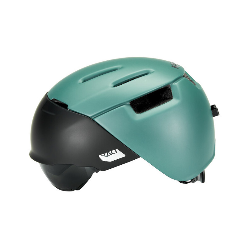 Casque urbain Kali City vert : visière intégrée, coussinets amovibles, LED arrière. Sécurité Composite Fusion Plus, confort été/hiver, idéal pour les trajets en ville.