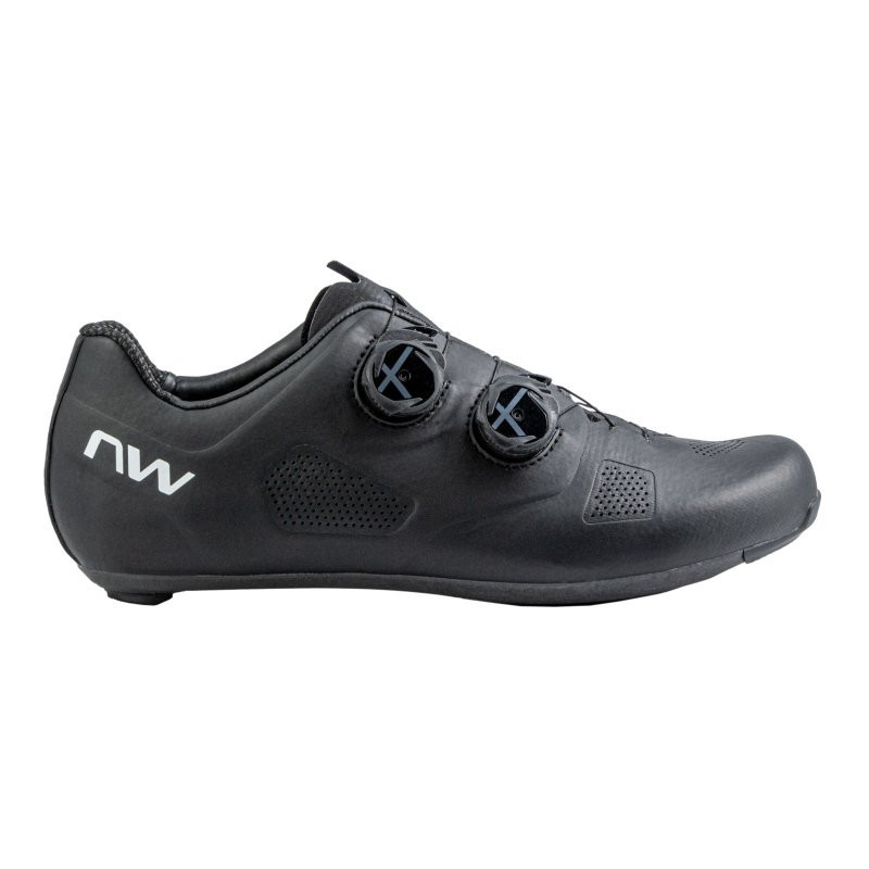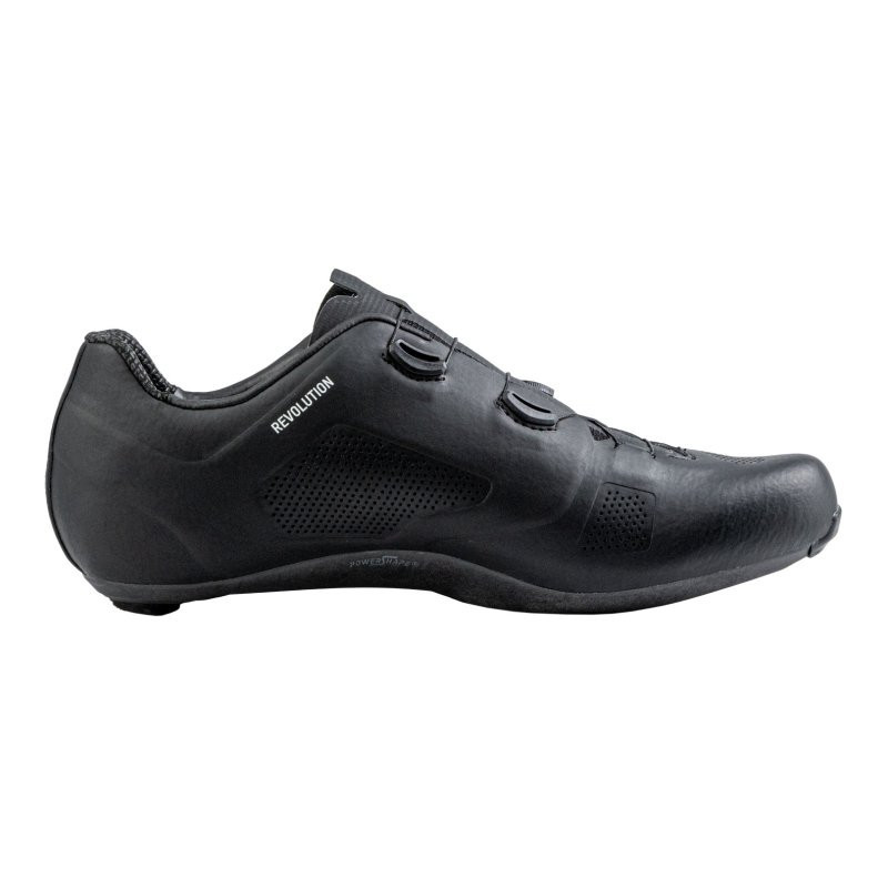 Chaussures vélo route Northwave Revolution 2025 noires : semelle carbone, double molette SLW3, confort anatomique, ventilation optimale. Idéales pour cyclistes exigeants.