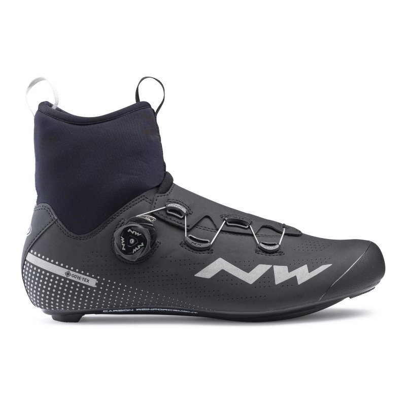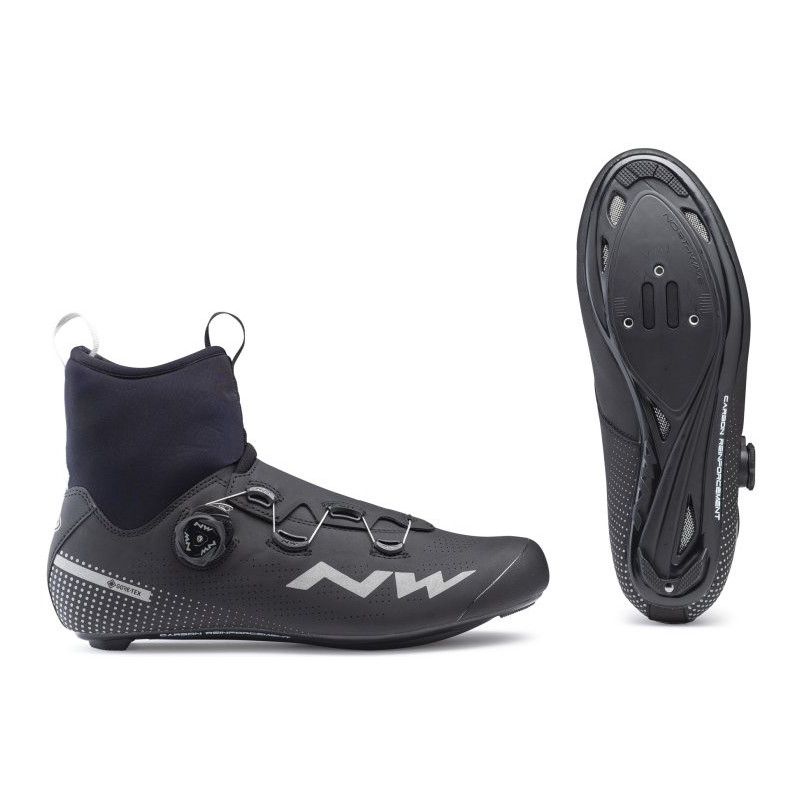 Chaussures vélo route Northwave Revolution 2025 noires : semelle carbone, double molette SLW3, confort anatomique, ventilation optimale. Idéales pour cyclistes exigeants.
