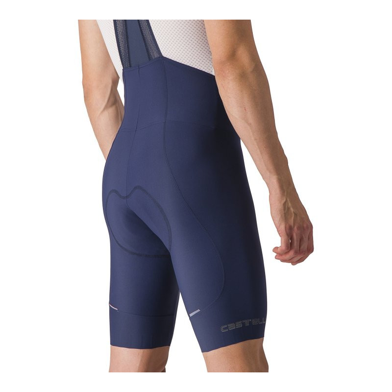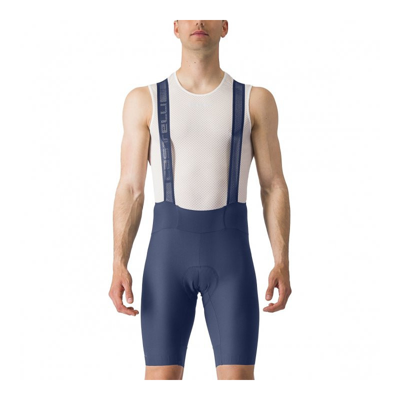 Cuissard Castelli Espresso bleu : confort haut de gamme pour cyclistes passionnés. Tissu Espresso Doppio, peau Progetto X2 Air, bretelles aérées, poche arrière. Idéal longues distances.