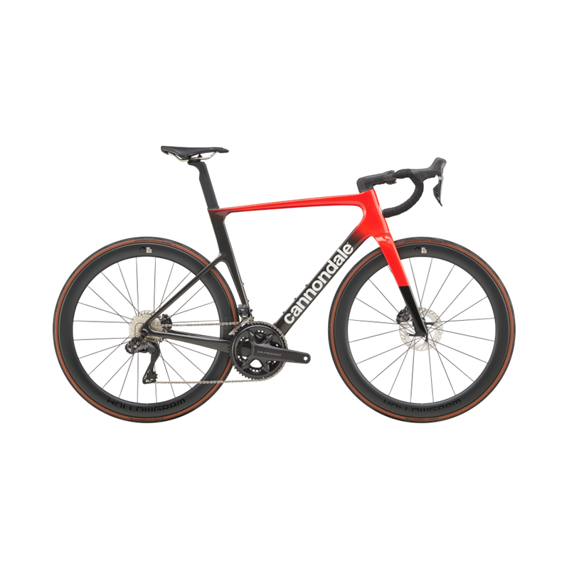 Cannondale SuperSix EVO Hi-MOD 2 Rally Red : cadre carbone Hi-MOD 810 g, aérodynamisme optimisé, groupe Shimano Ultegra Di2 12v, roues carbone HollowGram. Ultra léger, ultra rapide.