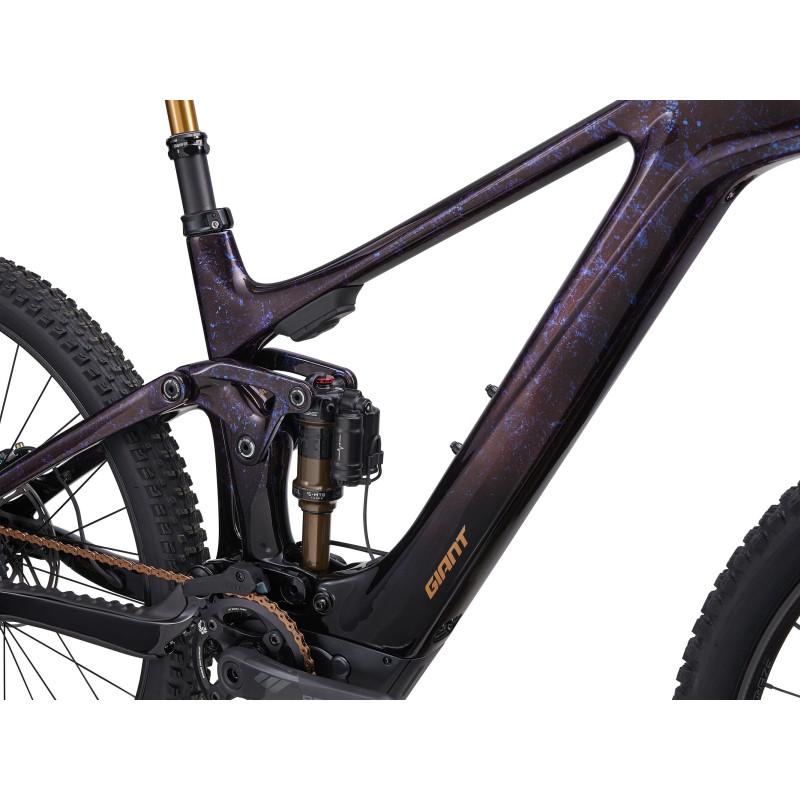 VTT électrique Giant Trance X Advanced E+ Elite 0 2023 : cadre carbone léger, moteur SyncDrive Pro² 85Nm, batterie EnergyPak 400Wh compacte, suspension Maestro 140/150mm, idéal trail et all-mountain.