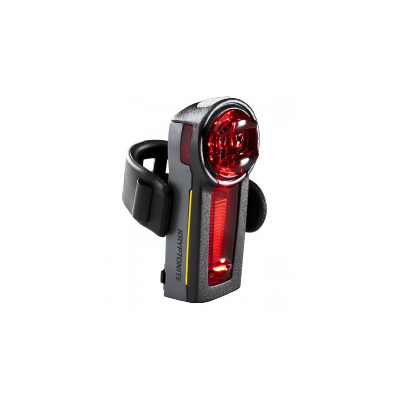 Feu arrière vélo Kryptonite Incite XBR avec capteur de freinage intelligent, visibilité optimale jour et nuit, LED haute puissance 20 lux, autonomie longue durée et recharge USB pratique pour une sécurité maximale.