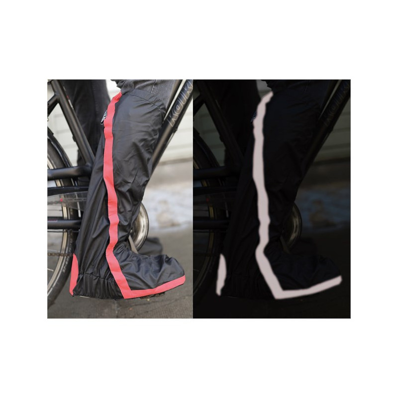 Couvre-chaussures Savatsech noir/rouge Spad de Ville : protection pluie jusqu’aux genoux, ouverture portefeuille, détails réfléchissants, tailles 36–44 et 41–49, étanchéité maximale.