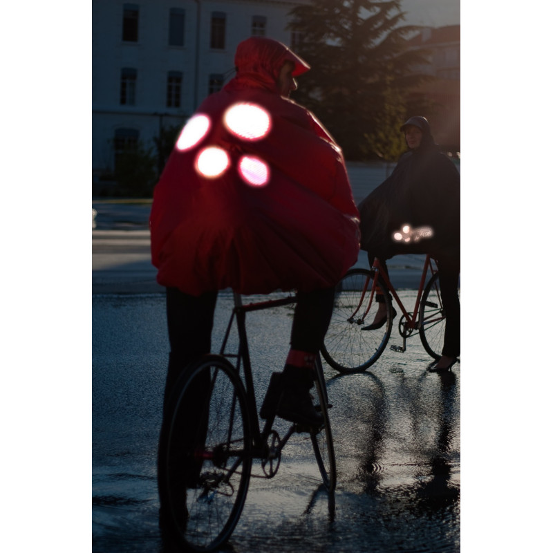 Cape de pluie vélo SPAD de Ville FULAP : protection intégrale du cycliste urbain, capuche à visière, tissu recyclé, système anti-vol, ne s’envole pas en roulant.