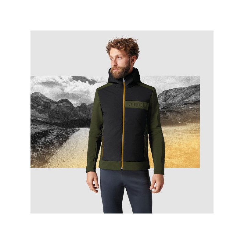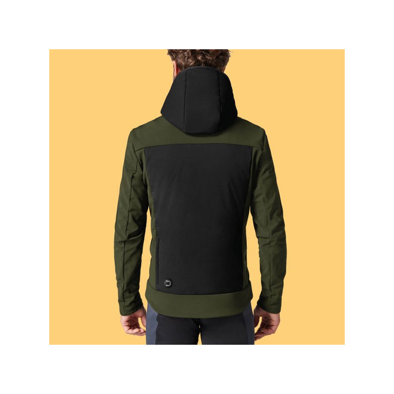 La coupe anatomique de la veste est pensée pour accompagner les mouvements sans gêner, avec un col ergonomique et une capuche rembourrée qui protègent efficacement du froid. Le bas de la veste et les manches en softshell assurent une bonne isolation tout en offrant une grande liberté de mouvement.