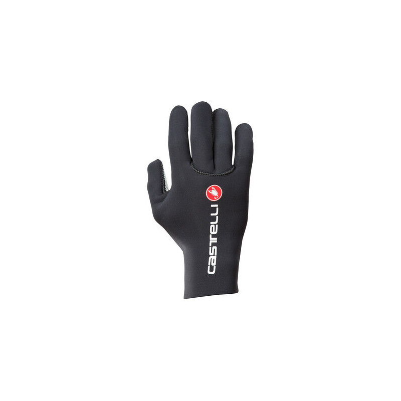 Gants Castelli Diluvio C : néoprène 3 mm, paume adhérente, coutures étanches. Idéals pour cyclisme par temps humide (5–16°C). Confort, imperméabilité et protection contre le vent. Compatible avec tenues hivernales.