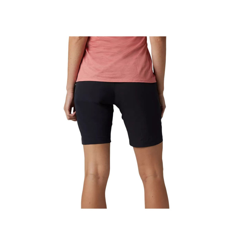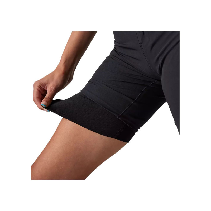 Short VTT femme Fox Flexair Ascent noir : mesh ultra-léger, doublure avec peau de chamois, tissu TruDri®, poches zippées, ajustement précis. Idéal gravel, XC, trail.