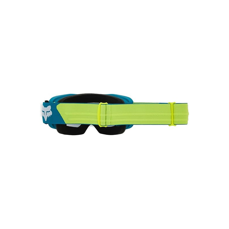 Masque Fox Main Core Turquoise/Jaune : écran Lexan™ anti-UV, vision large, mousse triple couche, tear-off, système VLS™, bandeau silicone. Confort et performance à prix mini.