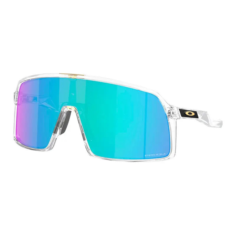 Lunettes Oakley Sutro Prizm Sapphire : vision élargie, monture O Matter légère, écran Prizm™ Sapphire pour contraste optimal. Idéales pour cyclisme, trail, sports outdoor. Protection UV catégorie 3, style moderne et confort longue durée.