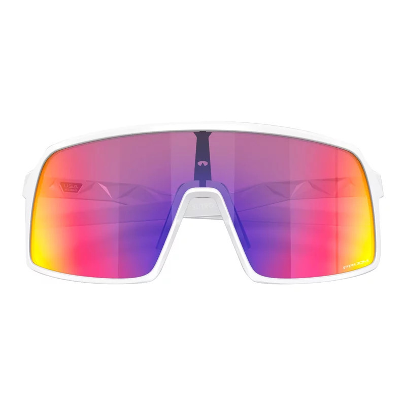 Lunettes Oakley Sutro S Matte White avec verres Prizm Road : vision optimisée, monture légère O-Matter, protection UV, confort longue durée. Idéales pour cyclisme, running et sports outdoor sur routes ensoleillées.