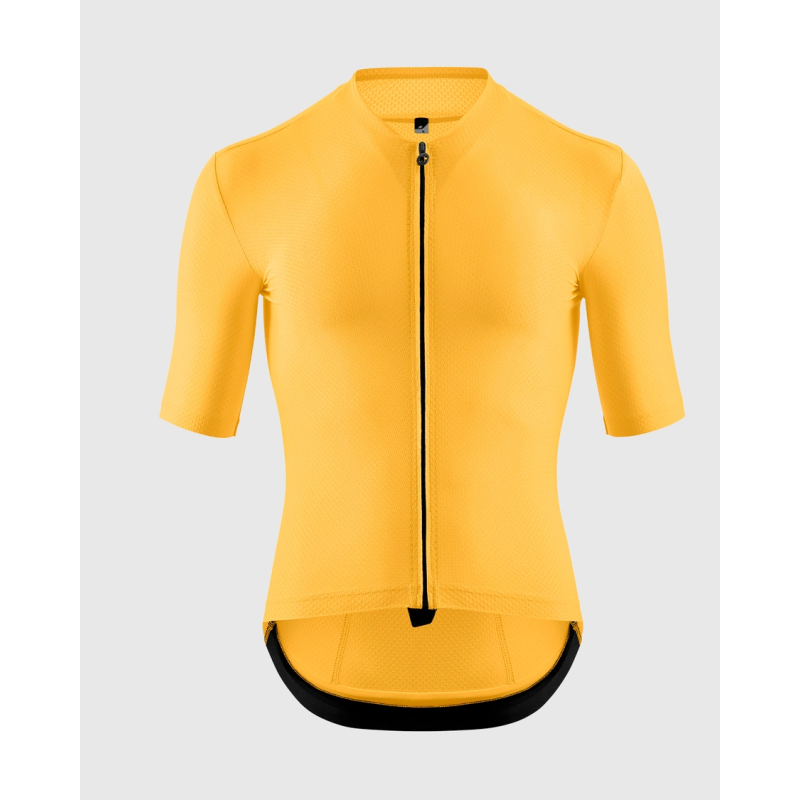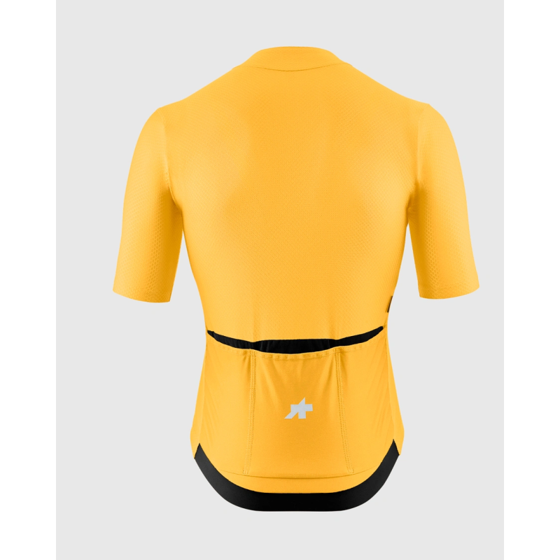 Maillot Assos Mille GT C2 kaki/jaune, coupe regularFit, manches à bords francs, tissu respirant BIG DUAL Tex, 3 poches arrière sécurisées. Confort et style pour sorties longues.