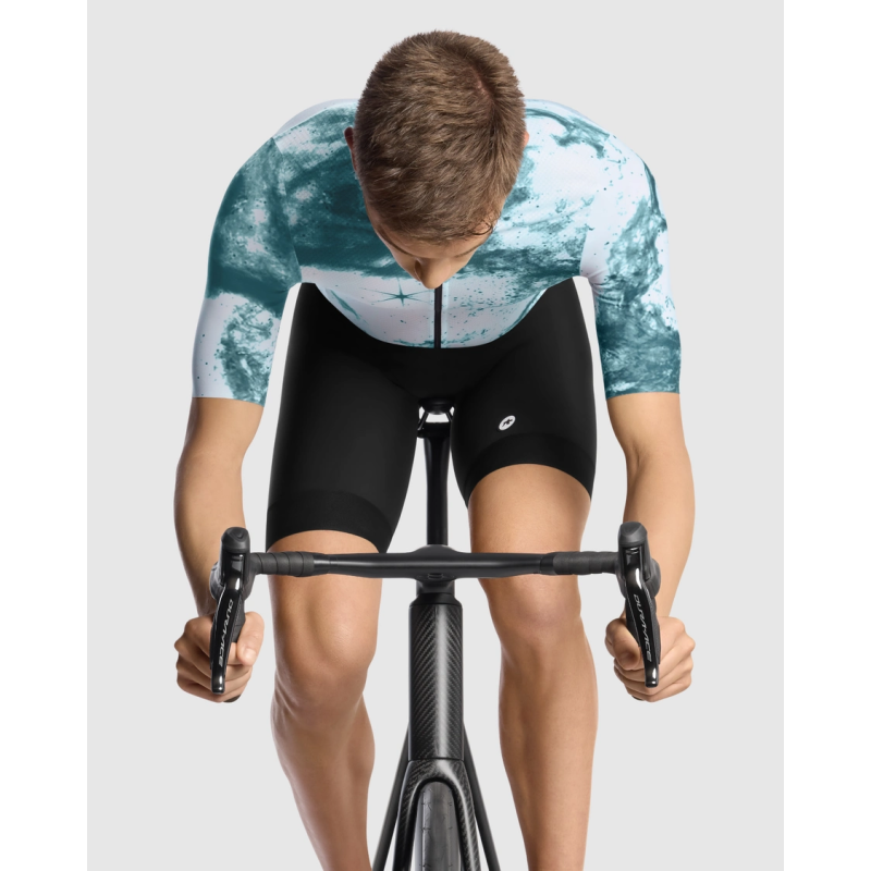 Maillot vélo Assos MILLE GT S11 Space Trip : ultra léger, respirant, coupe regularFit, manches raw-cut, tissu AirCell. Idéal pour longues sorties estivales. Poches sécurisées, maintien optimal, compatible avec système layering Summer 1/3.