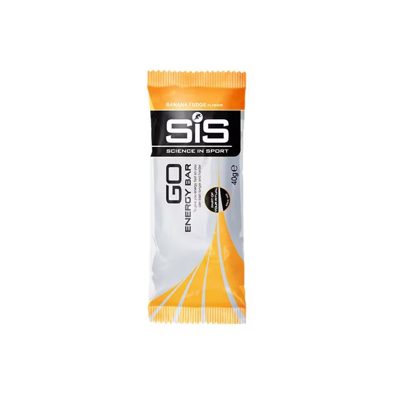 Barres SIS GO Energy banane fudge, 40 g, 25 g de glucides, digestion facile, goût fruité, énergie rapide. Idéales pour endurance, cyclisme, running, triathlon.