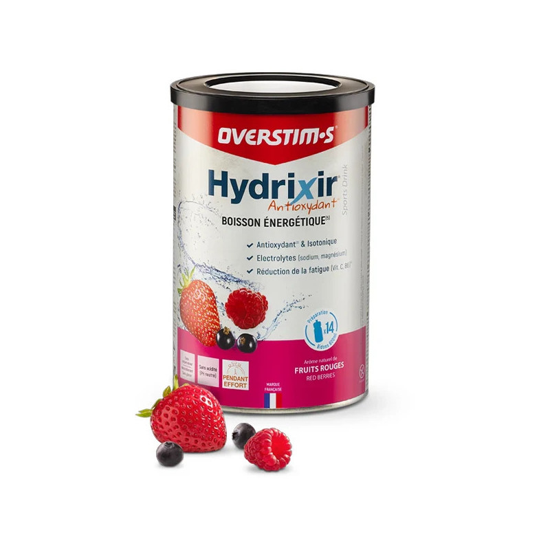 Hydrixir Antioxydant Overstims fruits rouges : boisson isotonique sans gluten, riche en électrolytes et vitamines, idéale pour l’endurance et la performance.