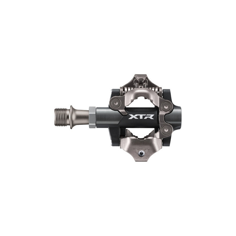 Pédales automatiques Shimano XTR PD-M9200 SPD avec cales SM-SH51, légères et robustes, conçues pour XC et VTT. Stabilité, efficacité et compatibilité SPD pour un pédalage performant.