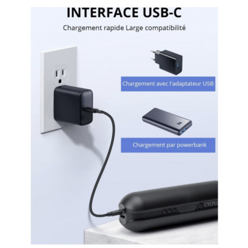 Parmi ses avantages, on retrouve une utilisation intuitive, un temps de gonflage réduit, et une autonomie suffisante pour plusieurs gonflages avant recharge. Sa batterie se recharge facilement via un câble USB, ce qui le rend pratique à utiliser à la maison comme en déplacement.