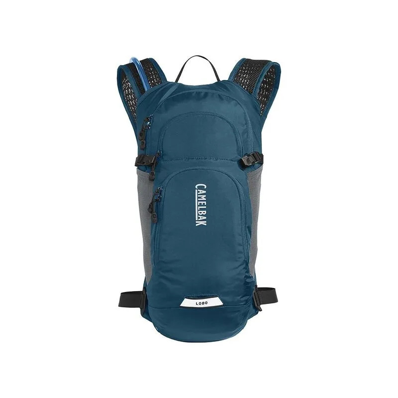 Sac à dos Camelbak Lobo 9 bleu/noir, 7L + réservoir 2L. Léger, ventilé, idéal pour VTT, randonnée et vélo. Confort optimal, matériaux durables, système Air Support™, compatibilité casque et outils intégrés.