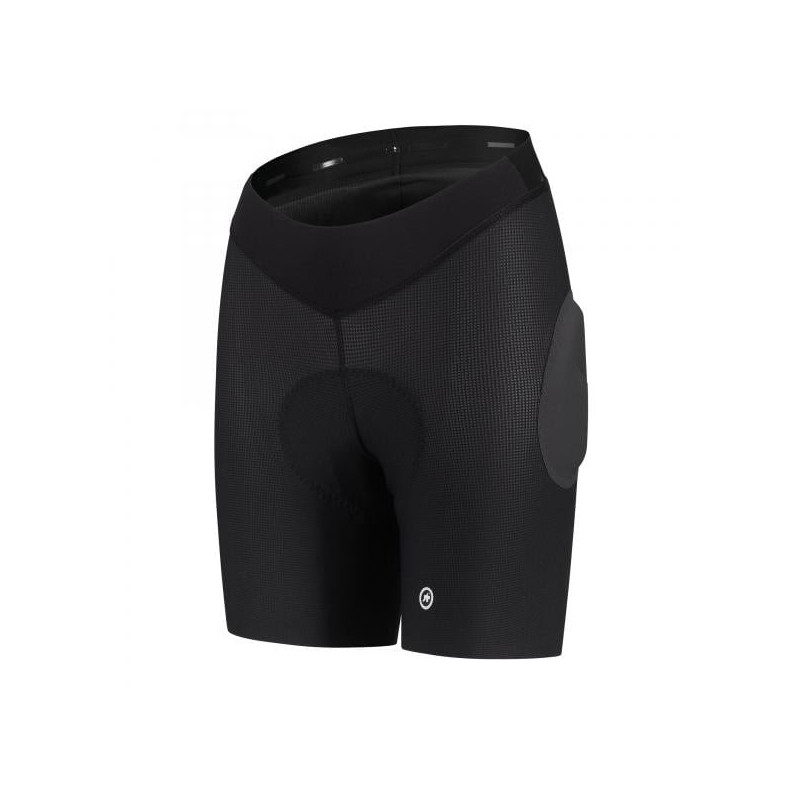 Cuissard Assos Trail Liner W : soutien léger, confort optimal et protection contre les chocs. Conçu pour le VTT féminin, avec inserts amovibles et coupe ergonomique.