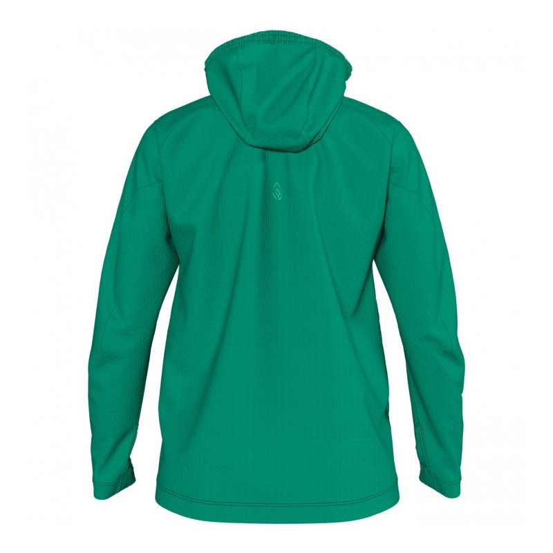 La couche extérieure tissée est coupe-vent, garantissant une barrière efficace contre les rafales tout en restant respirante. La capuche structurée, dotée d’un bord élastiqué, s’adapte parfaitement avec ou sans casque, offrant une protection supplémentaire sans compromettre la mobilité.