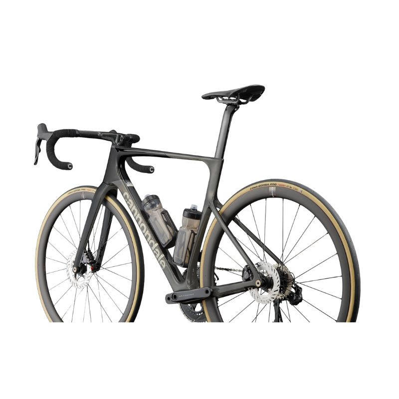 Les composants haut de gamme comme la tige Cannondale C1 Aero 40 Carbon V2, la selle Fizik Vento Antares R1 ou les grips Fizik Tempo Bondcush Soft complètent un montage orienté performance pure. Les accessoires intégrés, tels que les Cannondale Gripper Aero Bottles, CarbonGrip Aero Cages, valves Fillmore et support SystemBar SL Garmin/Wahoo, renforcent la cohérence d’un vélo pensé pour la compétition et l’efficacité maximale.