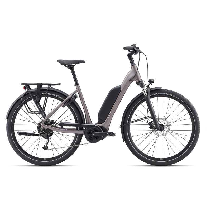 Vélo électrique urbain Giant Expression E+ 2 : moteur SyncDrive Core 50Nm, batterie 500Wh, cadre bas, fourche suspendue, freins hydrauliques, idéal pour trajets quotidiens et loisirs.