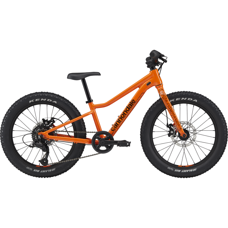 Cannondale Trail Plus 20 Orange : vélo enfant 20", cadre alu SmartForm C3, pneus larges pour stabilité, transmission 7 vitesses, freins à disque, idéal pour les jeunes cyclistes de 6 à 9 ans.
