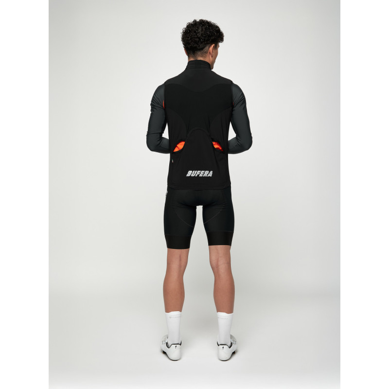 Ultra léger, le gilet Bufera se plie facilement et se range dans une poche arrière de maillot ou une sacoche, ce qui en fait un allié pratique à emporter lors de chaque sortie. Sa coupe ajustée épouse le corps sans gêner les mouvements, assurant une bonne aérodynamie même en cas de vent fort. Les empiècements réfléchissants intégrés améliorent la visibilité en conditions de faible luminosité, renforçant la sécurité du cycliste.