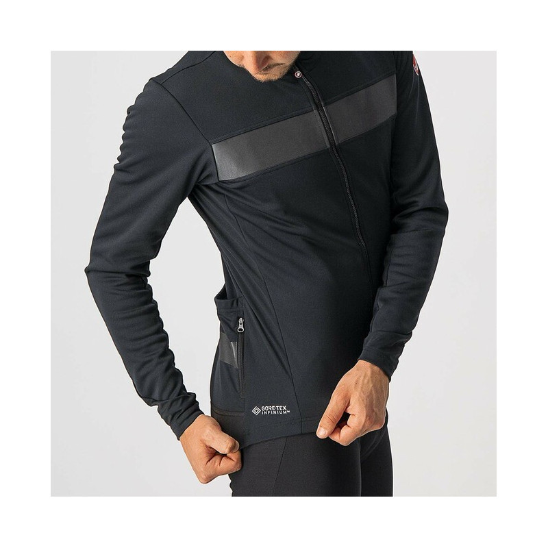 Veste Castelli Raddoppia 3 : GORE-TEX INFINIUM™, coupe-vent, respirante, doublée polaire, bandes réfléchissantes 360°, poches pratiques, idéale pour l’hiver à vélo.