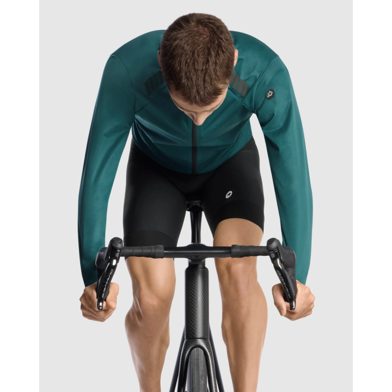 Veste vélo Assos MILLE GT Shell S11 : coupe-vent, imperméable, respirante. Tissu Hurricane avec traitement ECO DWR, coupe regularFit, éléments réfléchissants. Idéale pour toutes saisons, ultra compacte, compatible avec système layering GT.
