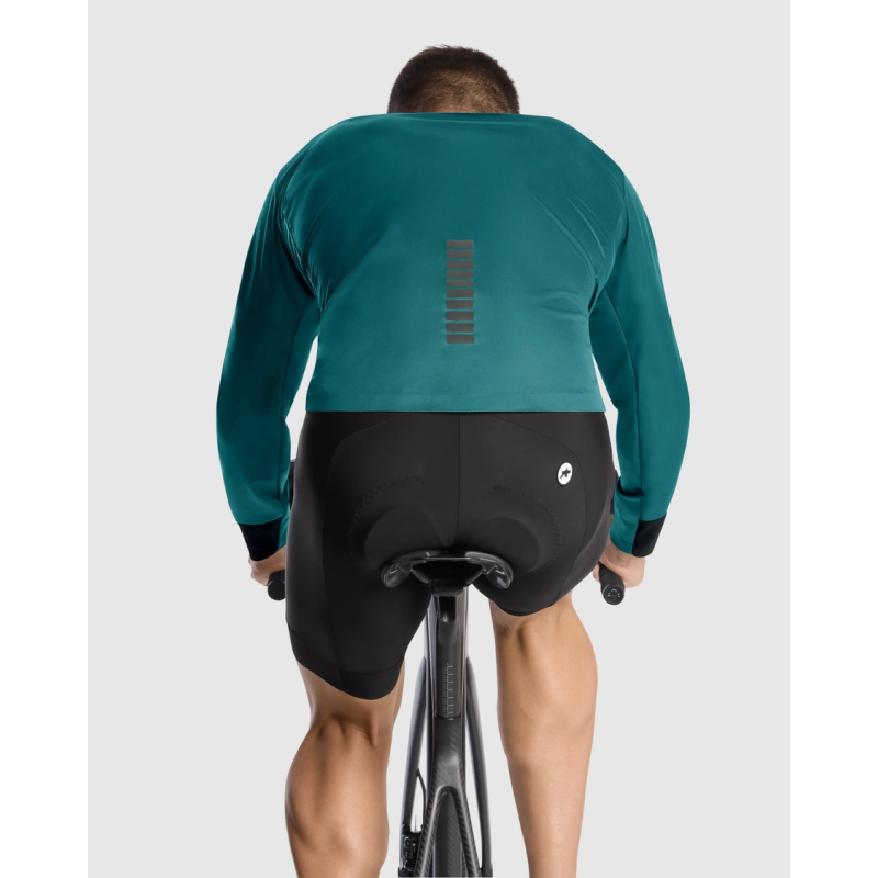 Les empiècements Sens-WR aux poignets assurent une protection étanche tout en facilitant le port de gants sans frottement. Le col montant et l’ourlet allongé renforcent la barrière thermique contre le vent et les projections. La coupe regularFit épurée, associée à des textiles ultra élastiques, épouse le corps sans excès de matière, garantissant un confort optimal pour le cyclisme d’endurance.
