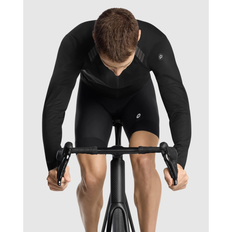 Les empiècements Sens-WR aux poignets assurent une protection étanche tout en facilitant le port de gants sans frottement. Le col montant et l’ourlet allongé renforcent la barrière thermique contre le vent et les projections. La coupe regularFit épurée, associée à des textiles ultra élastiques, épouse le corps sans excès de matière, garantissant un confort optimal pour le cyclisme d’endurance.