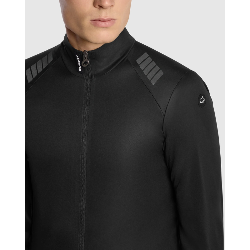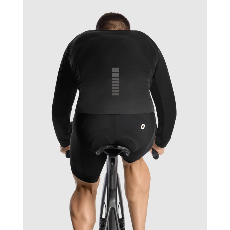 Veste vélo Assos MILLE GT Shell S11 : coupe-vent, imperméable, respirante. Tissu Hurricane avec traitement ECO DWR, coupe regularFit, éléments réfléchissants. Idéale pour toutes saisons, ultra compacte, compatible avec système layering GT.