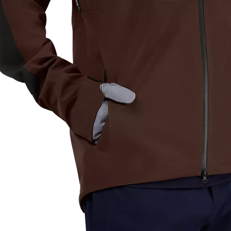 Veste VTT Fox Defend 3L Water : imperméable, respirante, coutures scellées, zips étanches, capuche compatible casque, poches zippées, renforts Cordura®. Protection ultime sur les sentiers.