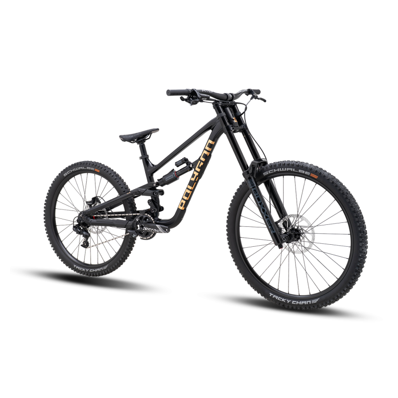 Les roues robustes, combinées aux pneus Schwalbe Tacky Chan Addix Soft, garantissent une adhérence exceptionnelle et une résistance optimale aux impacts. Les freins hydrauliques TRP DH-R EVO avec disques de 203 mm offrent une puissance de freinage constante et progressive, indispensable pour garder le contrôle dans les descentes engagées.