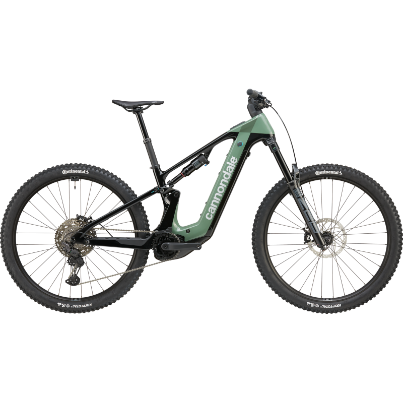 Cannondale Moterra 3 : VTT électrique tout-suspendu, moteur Bosch CX, batterie 800 Wh, cadre aluminium SmartForm, suspension RockShox, freins Shimano 4 pistons.